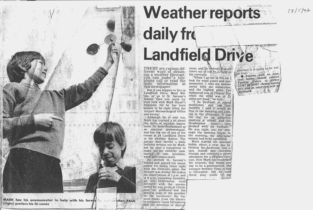 I currently live in Thornbury in the SW of England. I have been keeping weather records since 1977 when I was 11. I started to keep records for a school project and the teacher never told me to stop!